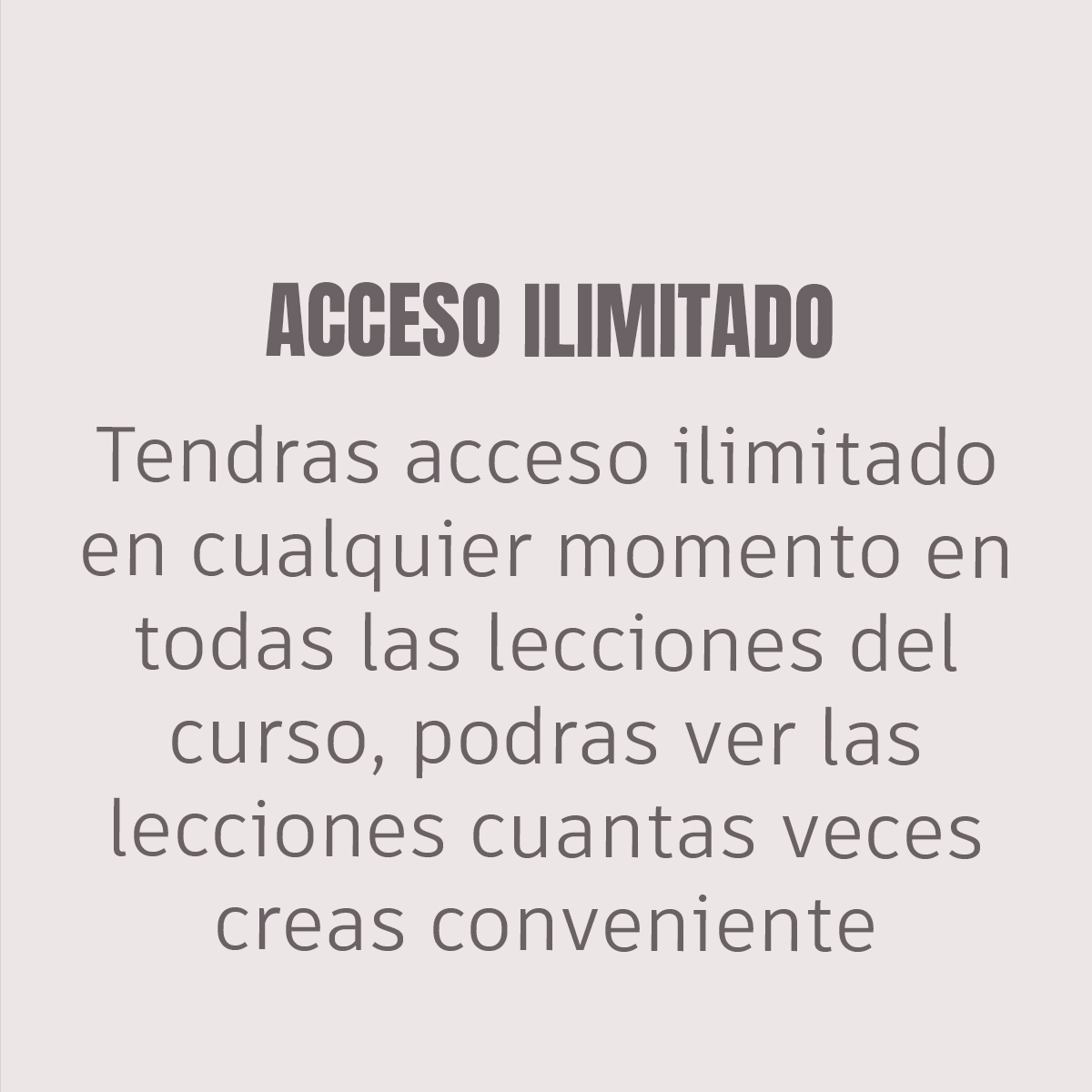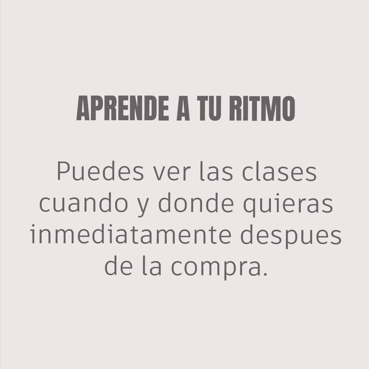 Una vez comprado podrás empezar de inmediato y seguirlo a tu ritmo ya que es un curso 100% online en el que puedes pausar o repetir las lecciones las veces que quieras.