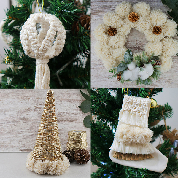 Curso en el que aprenderás más de 15 decoraciones navideñas con cuerdas y nudos.