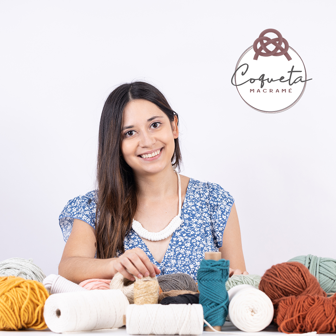 Hola, soy María Rosa, quien está detrás de coqueta macramé, una marca enfocada en enseñar a través de cursos, talleres y clases todo lo relacionado al macramé.